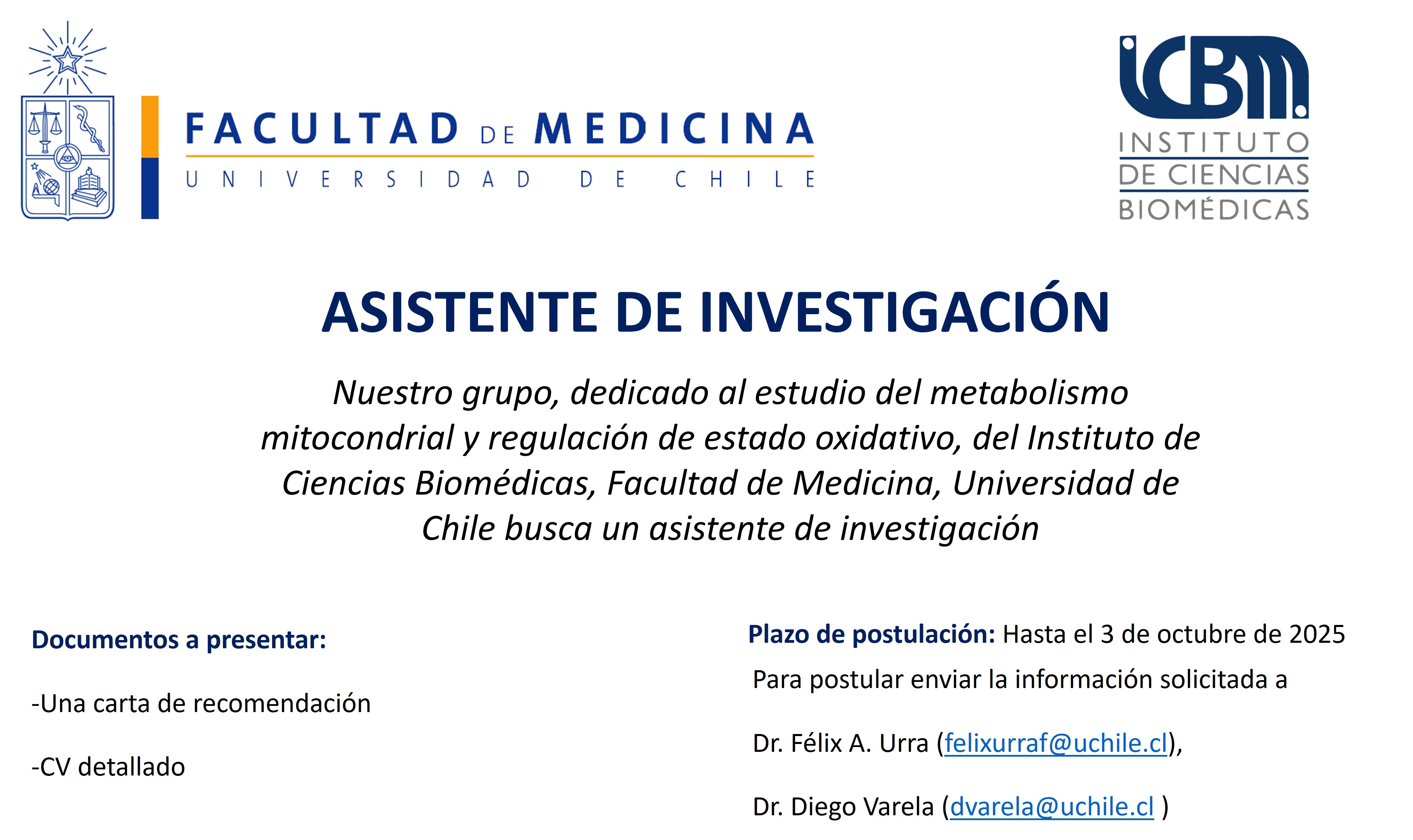 Para postular: enviar la información solicitada a Dr. Félix A. Urra (felixurraf@uchile.cl), Dr. Diego Varela (dvarela@uchile.cl )